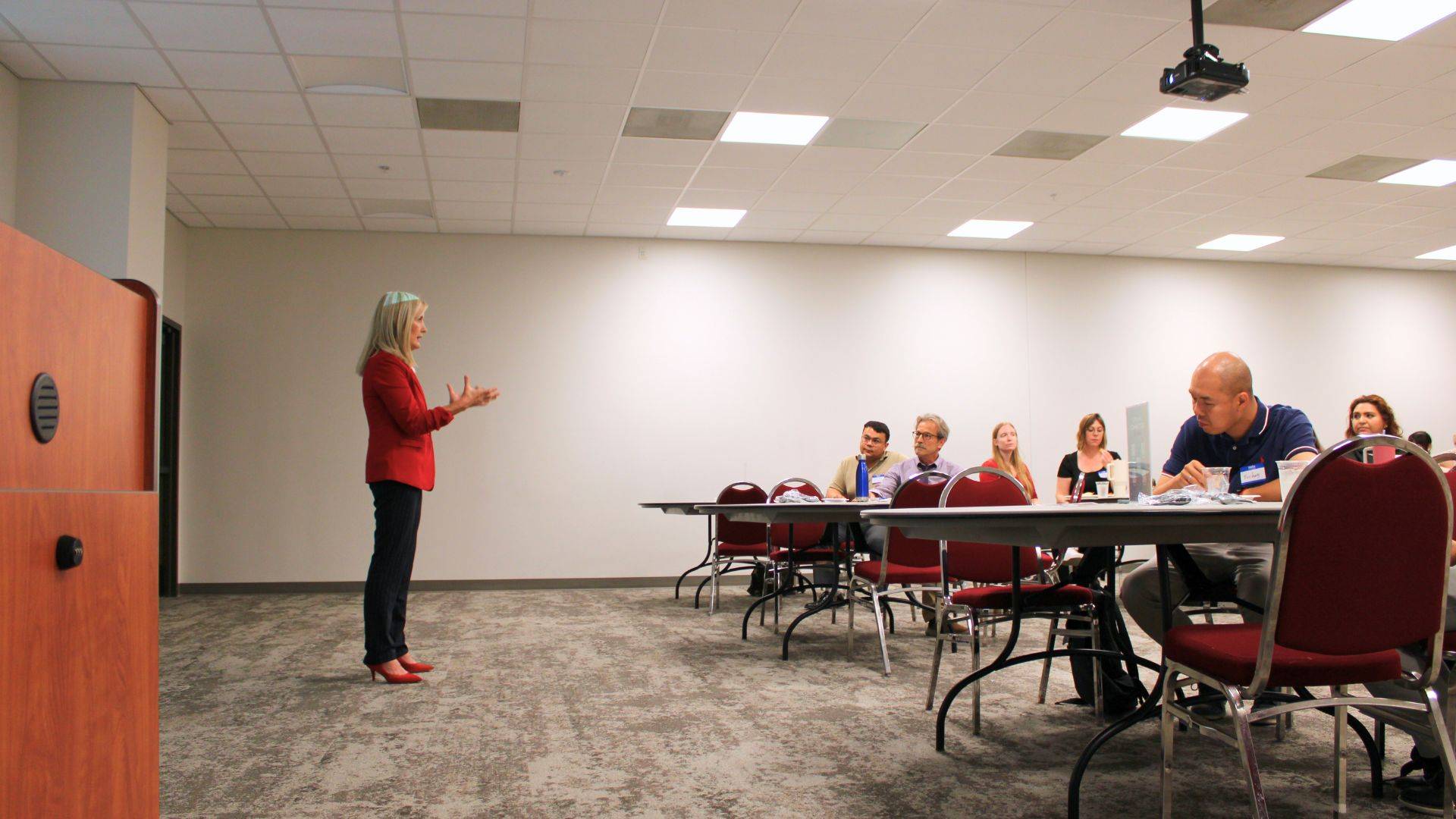 The event focused on healthy aging, featuring presentations by Clay DeStefano of the Price Center and Dr. Carmen Westerberg from Texas State University’s Department of Psychology. Attendees engaged in discussions about aging research being conducted at Texas State and on practical strategies to support well-being at every stage of life, highlighting the value of connecting research with real-world impact.